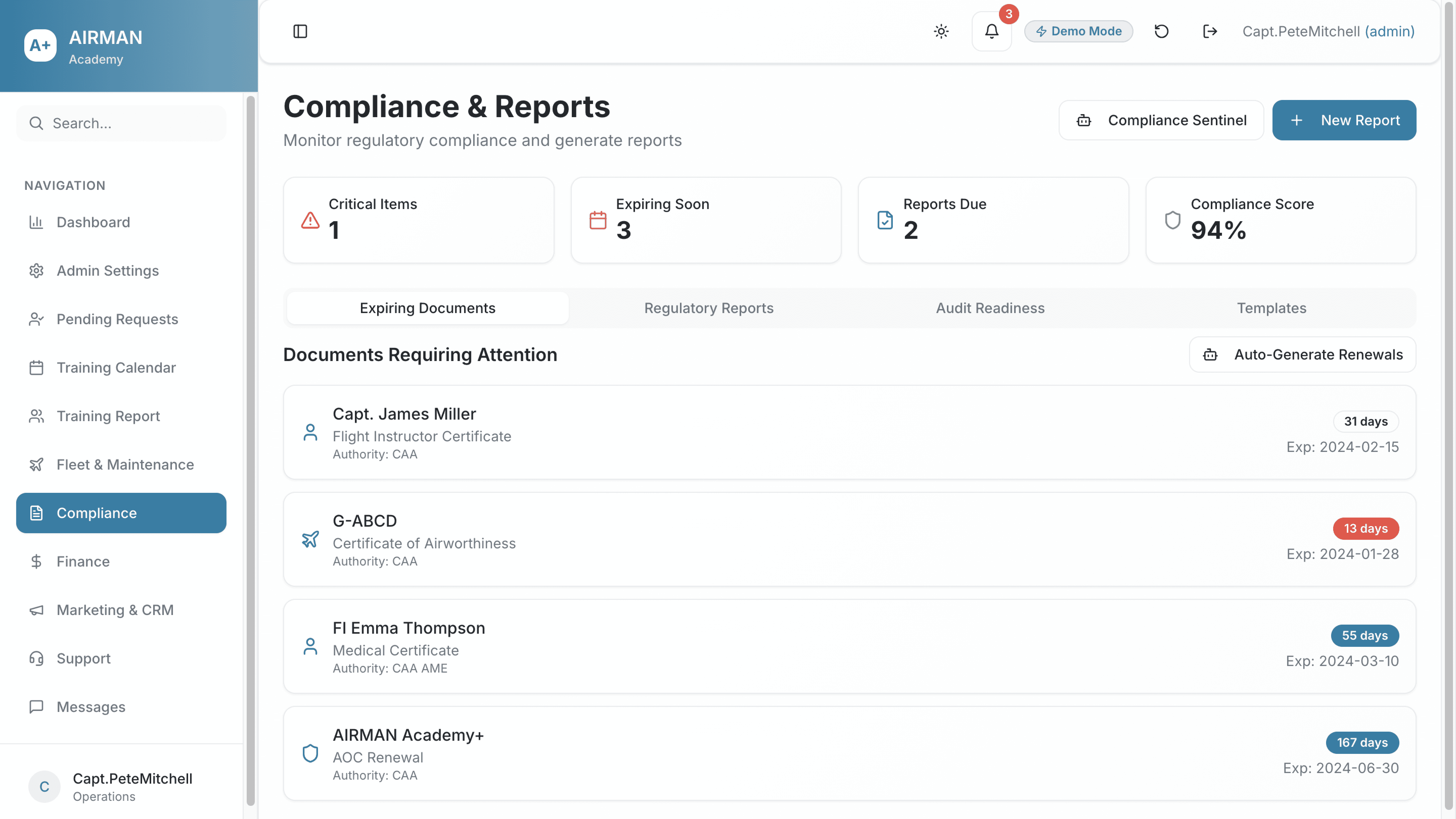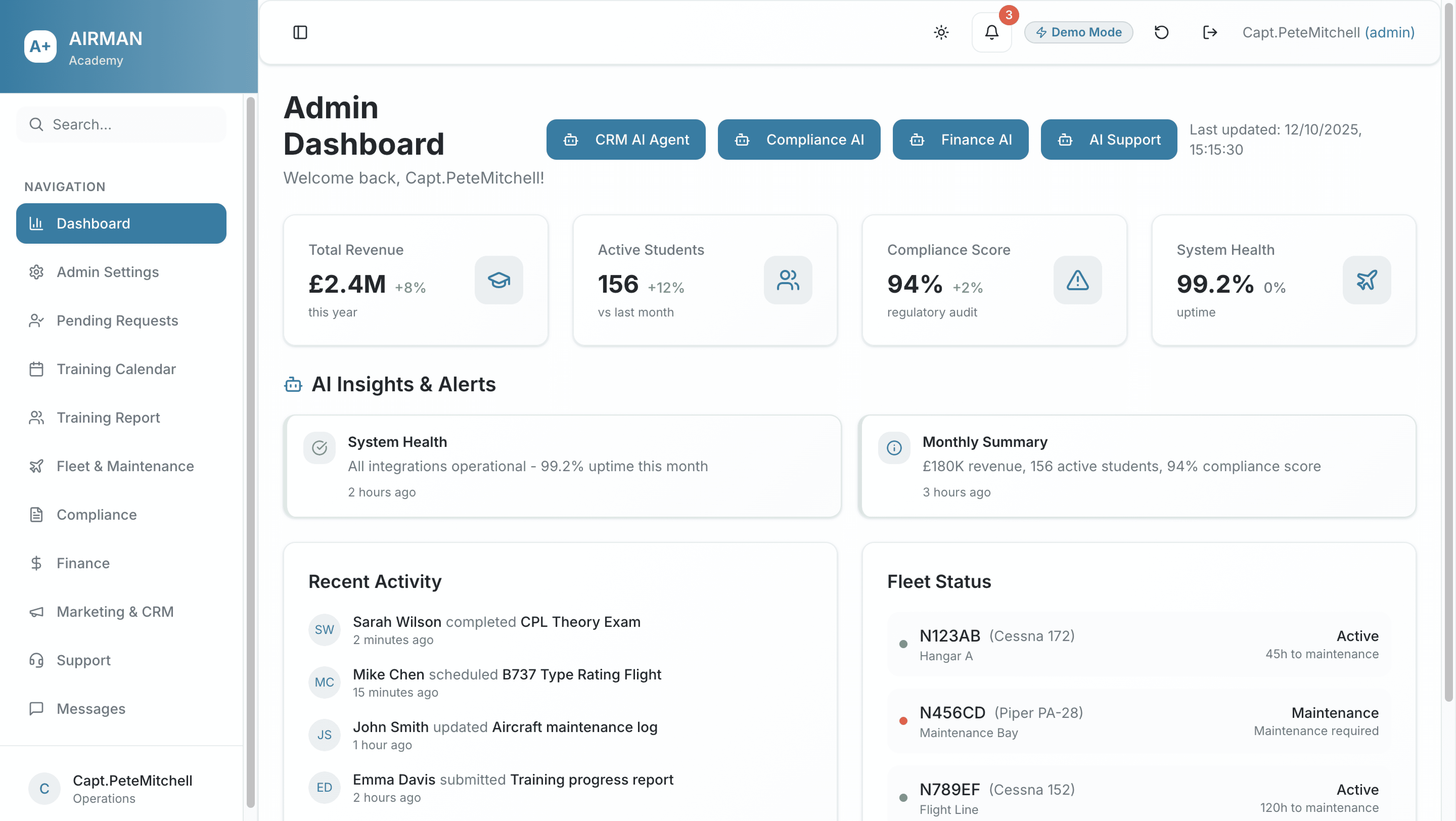 From rosters to regulations, flight schools run on details. Academy turns those details into data-driven clarity—freeing schools to train smarter, scale faster, and graduate pilots with confidence.