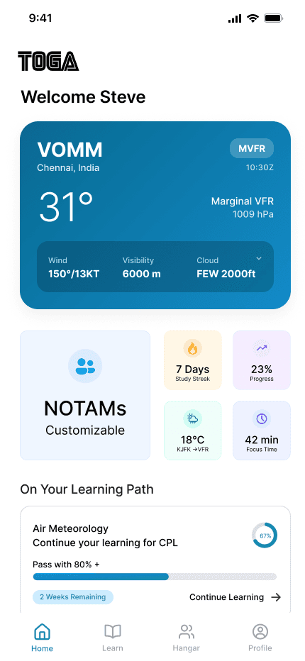 TOGA isn’t just built for study or flight it’s built for becoming a pilot.